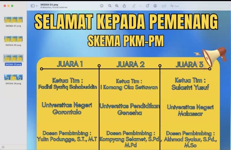 “Prestasi ini menjadi bukti bahwa mahasiswa Jurusan Pendidikan IPA UNM mampu bersaing dan berkontribusi melalui karya ilmiah yang bermanfaat. Saya berharap capaian ini menjadi motivasi bagi mahasiswa lain untuk terus berkarya dan berprestasi, tidak hanya di ajang PKM AMLI, tetapi juga di berbagai kegiatan kemahasiswaan lainnya, baik di tingkat nasional maupun internasional,” ujarnya.